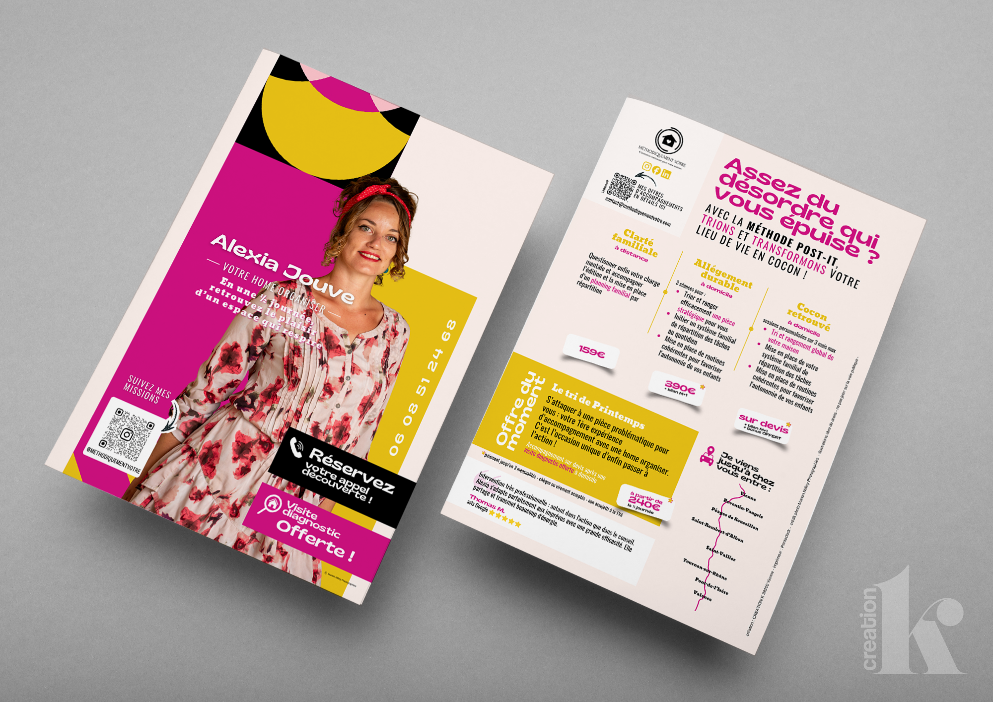 Confier la création de vos supports imprimés et de votre identité visuelle à un professionnel, c’est garantir une image claire, cohérente et percutante sur tous vos supports de communication. CREATION K analyse votre activité, vos valeurs et votre public pour concevoir un univers graphique fidèle à votre identité et maîtrise les contraintes techniques : couleurs, marges, typographies, résolution; afin d’assurer un rendu net, harmonieux et professionnel, du logo jusqu’à l’impression finale.